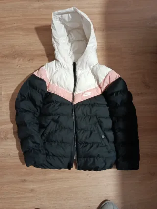 Cazadora de plumas para niña de la marca Nike. Es una prenda cálida y ligera, perfecta para el frío. Muy buen estado Para 9-10 años 128-137 cm - Diseño acolchado. - Capucha integrada. - Cierre de cremallera frontal.