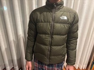 Chaqueta de plumón para niño de la marca The North Face. Es una prenda ligera y abrigada, perfecta para el frío. Para nino Entre 12-14 años. - Diseño acolchado. - Reversible verde-negro - Pluma 600 cuins - Costó nueva 135€