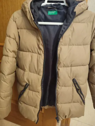 Chaqueta acolchada de la marca Benetton. Es talla XL de niño/niña pero es 38 en adulto - Color beige. - Diseño con capucha. - Acolchado horizontal.