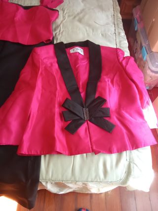 MUY ELEGANTE. DE UN SOLO USO. SIRVE TAMBIÉN PARA UNA TALLA M QUE ES LA MIA. CHAQUETA COLOR BURDEOS DE MANGAS SEMILARGAS Y CORSÉ ROSA. LA CHAQUETA ES DE TEJIDO RASO Y EL CORSÉ DE SEDA. IDEAL PARA EVENTOS Y CELEBRACIONES . LIMPIADO EN TINTORERÍA. VA A JUEGO CON LA FALDA QUE TENGO EN VENTA EN MI ARMARIO.
