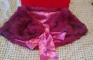 Bolero de pelo,forrado.Color burdeos.Se cierra con un lazo de raso,rosa fucsia.