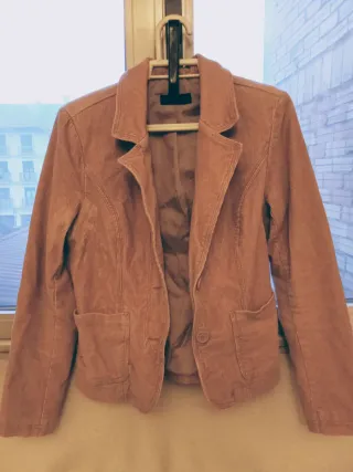 Chaqueta de pana (queda a ras del pantalón) de color rosa del Stradivarius. En buen estado. Talla: M