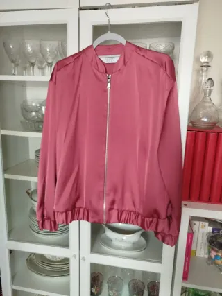 chaqueta bomber acolchada en raso color rosa muy chula. Talla M