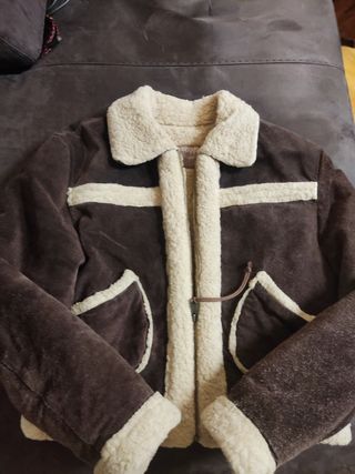 Chaqueta Chipie estilo torera de piel vuelta marron e interior forrado en borrego. talla L. años 90. muy cuidada. Vendo porque ya no me vale. medidas: .De hombro a cintura (por delante): 48cm. . Diámetro cintura: 95cm. .Espalda (ancho de hombro a hombro): 48cm. .De cuello a cintura (por detrás): 58cm.