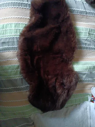 Elegante estola torera confeccionada en pelo sintético de color marrón. Un accesorio que aporta un toque sofisticado a cualquier atuendo. - Diseño tipo torera. - Acabado suave y voluminoso del pelo. - Forro interior de satén.