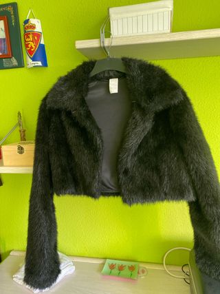 Torera corta de pelo sintético, ideal para dar un toque especial a tus looks. - Diseño cropped. - Manga larga. - Cierre con un botón.