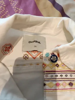 Chaqueta de la marca Desigual con un diseño original. - Cuello y coderas en contraste. - Bolsillos delanteros con pespuntes. - Botones de diferentes colores.hago lotes y envio, no ofertas. Último precio para envio.
