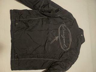 Chaqueta estilo motero con un diseño único y detalles originales. - Estampado interior con mensajes y dibujos. - Cierre de cremallera frontal. - Bolsillos con solapa y botón. - Cuello alto.