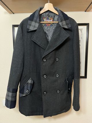 Abrigo de la marca Desigual con un diseño moderno y llamativo. - Doble botonadura. - Cuello solapa. - Diseño de rombos en las mangas. - Forro interior a rayas. Pdb: abrigo, chaqueta , invierno , frío, borreguito , moda, moderno, oferta, rebajas , marca, chollo, desigual, levis, Macson, XL, XXL