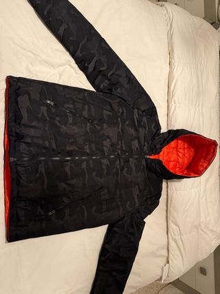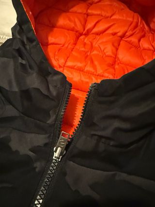 Chaqueta reversible con un diseño llamativo. camuflaje de texturas negras y por otro lado Naranja - Estampado de camuflaje en un lado. - Interior de color naranja vibrante.