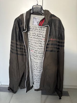 Chaqueta de hombre de la marca Desigual, por estrenar . - Diseño con capucha extraible. - Cierre de cremallera. - Puños y bajo elásticos con detalles de rayas. Medidas contorno de pecho 124 centímetros y de largo 73 centímetros