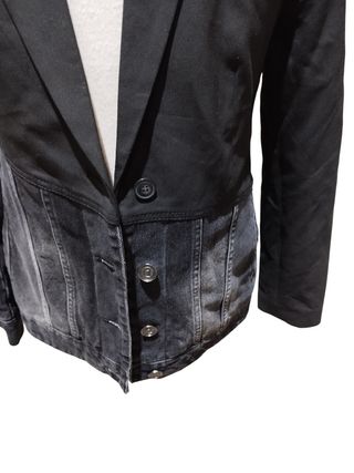 Americana de la marca Desigual con un diseño moderno y original. - Combinación de tejido negro y efecto denim desgastado en azul. - Cierre de un botón. - Cuello solapa clásico. -ab302