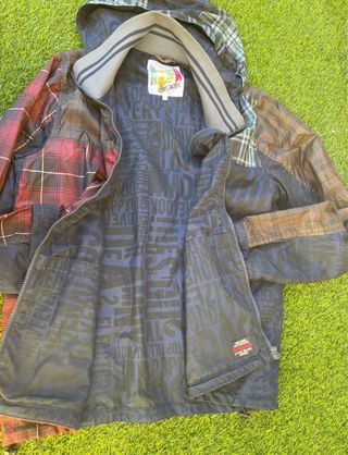 Chaqueta cortavientos con un llamativo diseño patchwork. - Combinación de estampados a cuadros. - Paneles con diseño de texto. - Capucha integrada. - Cierre de cremallera frontal. Incluye el lema "It's not the same" en la etiqueta interior y "Never stop your dream" en el forro.