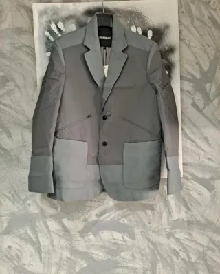 Chaqueta de hombre con un diseño moderno y detalles únicos. Usada pero bien cuidada. - Cremallera frontal. - Múltiples bolsillos con cremallera y solapa. - Costuras decorativas en contraste.