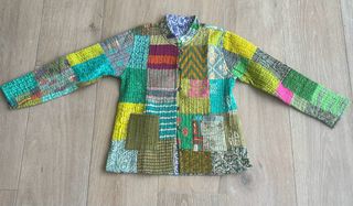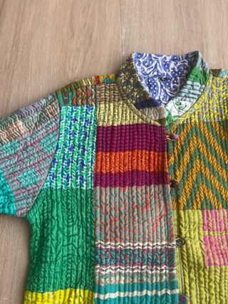 Chaqueta de estilo patchwork con un diseño único y colorido. Es reversible, ofreciendo dos looks en una sola prenda. talla M. Es étnica y no tiene marca. - Diseño patchwork. - Reversible. #boho #maisonhotel #desigual #ba&ash #hossintropia #michonet