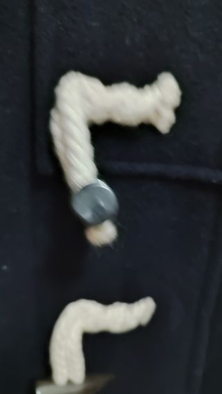 Preciosa chaqueta de paño de la marca Franklin & Marshall. Es de color negro-azul marino y tiene capucha. - Estilo trenca - Cierre con botones de madera - Bolsillos funcionales - Tejido de lana