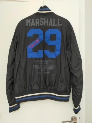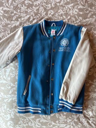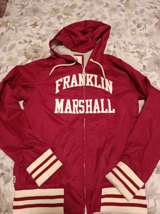 Chaqueta bomber Franklin and Marshall, con capucha. Está en muy buen estado. - Diseño universitario. - Bolsillos laterales. - Cierre de botones a presión.