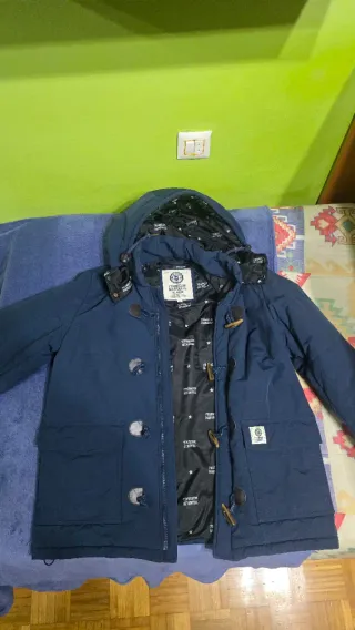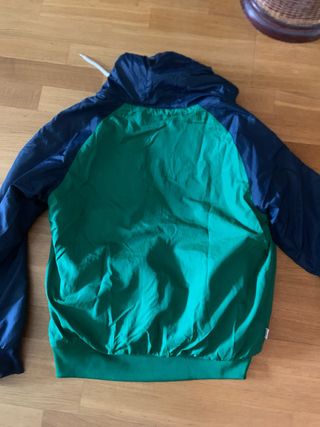 chaqueta entretiempo sin usar prácticamente lo único que la lave con agua caliente y el logo se borró parcialmente , lo demás está nueva .