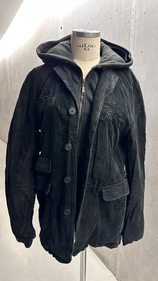 Chaqueta de pana de la marca Franklin Marshall. - Color negro. - Diseño con capucha. - Cierre de cremallera y botones. - Bolsillos frontales.