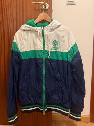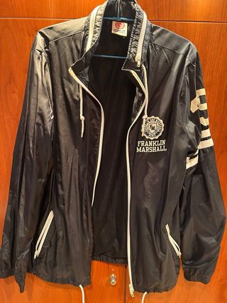 Chaqueta Franklin Marshall practicamente nueva a pesar de los años, siempre bien cuidada y lavada, con toda la serigrafía en perfectas condiciones. Talla M, no queda ajustada ni holgada, es un tallaje normal.
