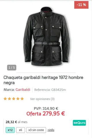 Chaqueta heritage de la marca Garibaldi, modelo 1972. - Color negro. - Diseño clásico con cinturón. - Referencia: GB3425m. Como nueva,muy poco uso. Con huecos para poner protecciones en codos,hombros y espalda. Forro interior extraible para diferentes temperaturas.
