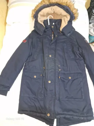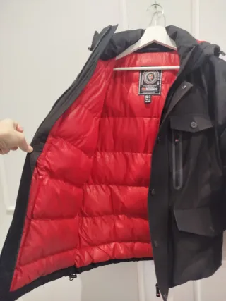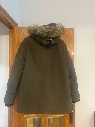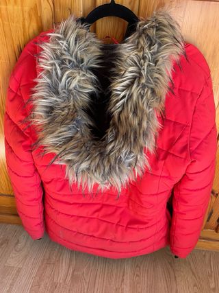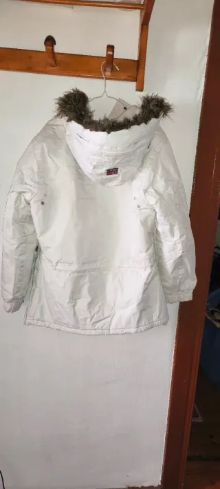 Chaqueta de invierno con capucha y detalles distintivos. Confeccionada en un tejido impermeable y térmico, te protege del frío y la lluvia. - Capucha fija con borde de pelo sintético desmontable. - Cierre frontal con cremallera. - Bolsillos frontales con solapa. - Bolsillos laterales y puños ajustables con velcro. - Cordón ajustable en la cintura. Vendo por error de talla, fue un regalo.