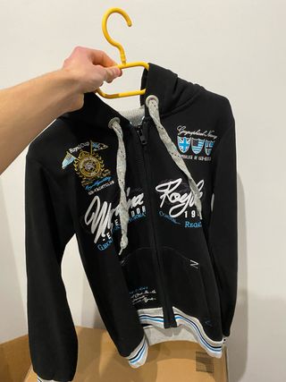 Chaqueta de invierno con capucha y detalles de pelo sintético marca NORWAY y Jersey Nautica de cremallera en color azul - Capucha con ribete de pelo sintético. - Cierre de cremallera frontal. - Bolsillo tipo canguro en la parte delantera. - Parche con el logo de la marca en la parte inferior.