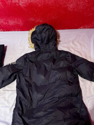 • Con uso, pero en bastante buen estado • Con algún que otro desperfecto visibles en las imágenes adjuntas: - Algún velcro del bolsillo central está algo descosido - Falta algún corchete • Chaqueta de nieve que abriga bastante • Con forro polar y pelo en la capucha