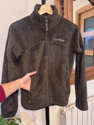Chaqueta de forro polar con cremallera completa de la marca Geographical Norway en color marrón y talla 1, que equivale a S. Bolsillos frontales con cierre de cremallera. Tejido muy cómodo y cálido.