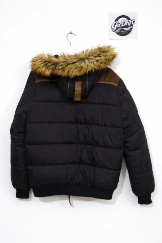 Chaqueta de invierno con capucha y forro de pelo. - Cierre de cremallera y botones. - Bolsillos frontales con solapa. - Puños ajustables.