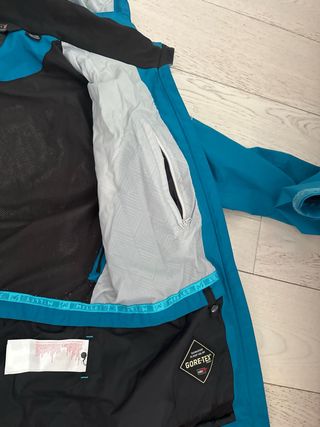 Chaqueta Haglöfs - Confeccionada con tecnología Gore-Tex para máxima protección. - Diseño moderno en tonos verdes y azulados. - Cremalleras frontales y en los bolsillos. - En perfecto estado