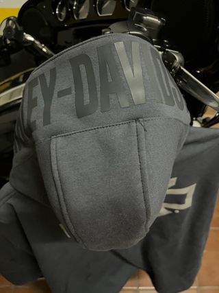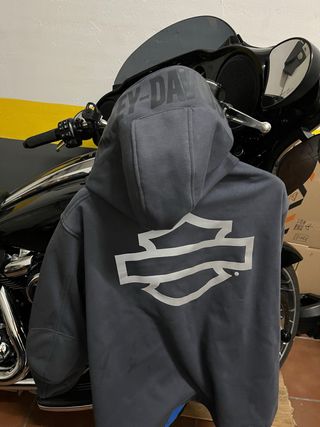 Chaqueta original traida de USA de Harley-Davidson. - Diseño con capucha. - Estampado frontal y trasero. - Color gris.