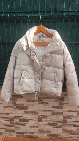Chaqueta acolchada con interior de borrego. Tiene pequeña mancha de boli trasera. En las últimas fotos salen las medidas.
