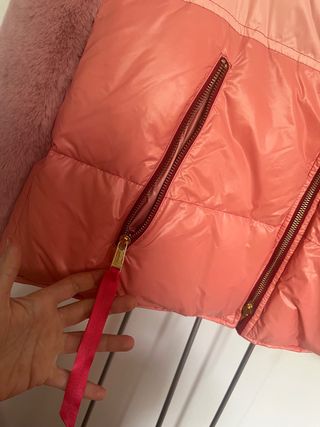 Como nueva. Me la he puesto un par se veces tras lo que pague por ella pero me queda prieta tras engordar 😓. Da mucho calor y es muyy suave. tiene bolsillos y es reversible asi que puede ser rosa o roja oscuro.