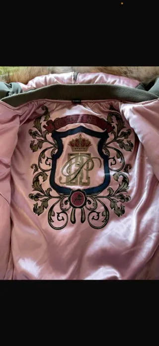 Espectacular chaqueta acolchada de la marca española Holy Preppy (University of Preppy). Un diseño exclusivo de estilo preppy o ecuestre, con muchos detalles de gran calidad. Marca: Holy Preppy Talla: L (EUR L / USA LARGE) Color: Rojo brillante/coral, con ribetes y detalles en marrón oscuro (terciopelo/pana). Tejido: 100% Poliamida (tejido acolchado). Detalles clave: Bordado trasero: Gran escudo con corona, laureles y la inscripción "Holy Preppy" bordado en marrón. Corte: Entallado, con forma tipo peplum en la cintura y trabillas de ajuste en el lateral. Cuello y hombros: Refuerzos y cuello de tejido tipo pana o terciopelo m