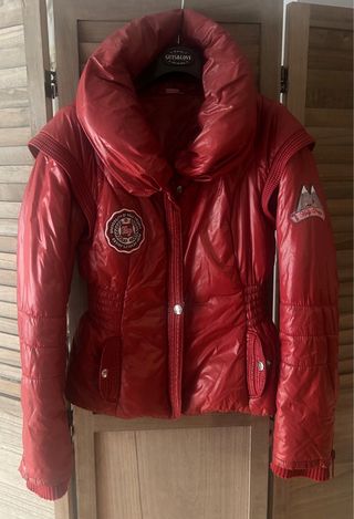 Chaqueta roja Holy Preppy talla S. Abrocha con corchetes.