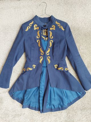 Chaqueta Azul Marino y Camel , con Cola , se puede llevar corta o larga, talla S puede ajustar se a una 34/36 , poco uso , gust &love , vintage