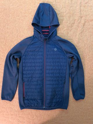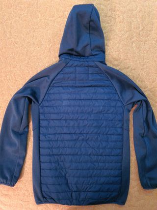 Chaqueta híbrida de la marca Jack Jones para junior. Combina tejido acolchado en el cuerpo con mangas y capucha de forro polar. Talla 164. - Artículo : Chaqueta híbrida - Funcionalidad : Resistente al viento - Cuello : Capucha - Manga : Manga larga - Puños : Puños con ribetes elásticos - Largo/talla : Corto - Acolchado : Acolchado de plumón de fibra sintética para una mayor sensación de suavidad y calidez - Cuerpo acolchado con diseño capitoné. - Mangas y capucha de forro polar. - Cremallera frontal completa. - Bolsillos laterales con cremallera.