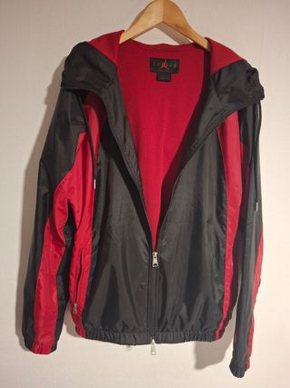 Preciosa chaqueta cortavientos de la marca Air Jordan. Es una prenda estupenda para cualquier ocasión. - Diseño bicolor en rojo y negro. - Capucha incorporada. - Cierre de cremallera.