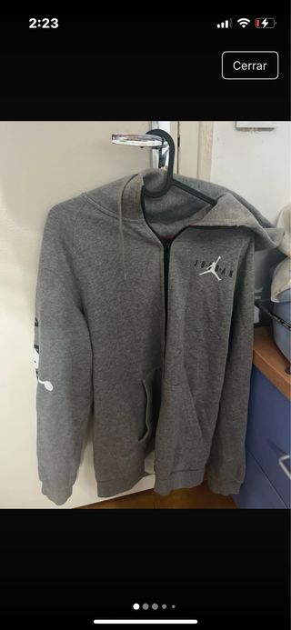 Chaqueta Jordan con capucha un diseño moderno y cómodo edición especial Jordan 3 detalle de la zapatilla en la manga mirar fotos Comprada en estados unidos imposible encontrar en ningún sitio pequeño agujero mirar fotos bastante uso de hay el precio. - Capucha - Cierre completo con cremallera. - Bolsillos frontales con solapa y botón. - Logo de Jordan bordado en el pecho .