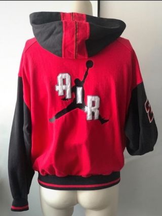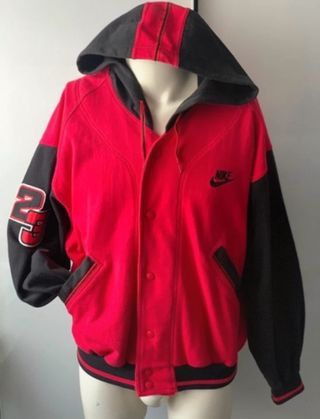 Chaqueta estilo varsity de Jordan con un diseño llamativo en rojo y negro. Cuenta con capucha integrada y detalles icónicos. - Mangas en contraste. - Cierre de botones. - Bolsillos laterales. - Logo de Nike bordado. - Número 23 en la manga.