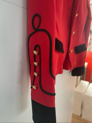 Elegante chaqueta de la marca La Condesa. Talla 40. Puesta en un par de ocasiones, esta como nueva. - Diseño militar. - Detalles en terciopelo negro. - Botones dorados. - Forro interior rosa.