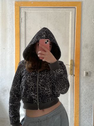Chaqueta con estampado de leopardo y tacto suave. - Diseño con cremallera frontal. - Puños y bajo elásticos. - Capucha integrada.