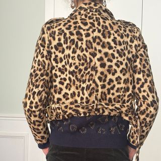 Chaqueta con estampado de leopardo y detalles en negro. - Diseño llamativo. - Cierre de cremallera.