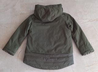 Cazadora reversible con un diseño llamativo. - Un lado es liso en color beige. - El otro lado tiene un estampado de leopardo. - Capucha integrada.