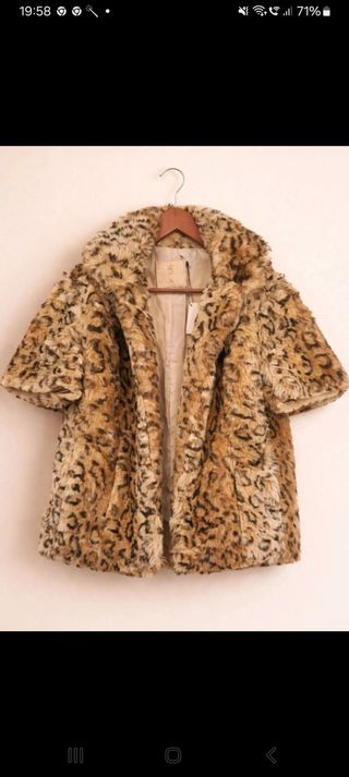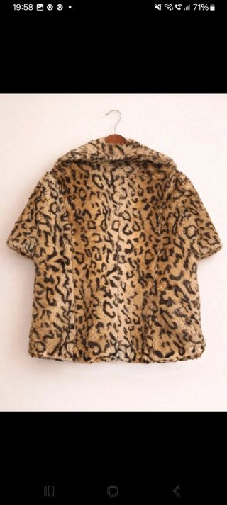 Chaqueta de pelo sintético con estampado de leopardo. Es una prenda llamativa y con un diseño único. - Manga corta. - Cuello amplio.