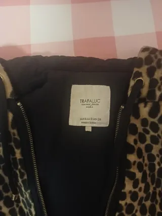 Chaqueta con estampado de leopardo y tacto muy suave. - Diseño de pelo, tipo polar. - Cierre de cremallera frontal. - Cuello alto. - Es corta, a la cintura. - Talla 14 años. Talla una XS / S. - Nuevo. No tiene etiqueta. No se ha usado.