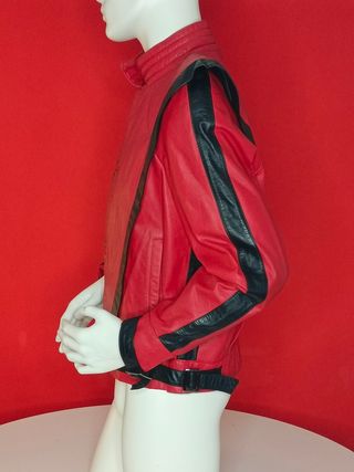 Icónica chaqueta de piel auténtica del mismo estilo como la que llevaba Michael Jackson en el famoso videoclip Thriller de 1982. Talla 44. No negociable
