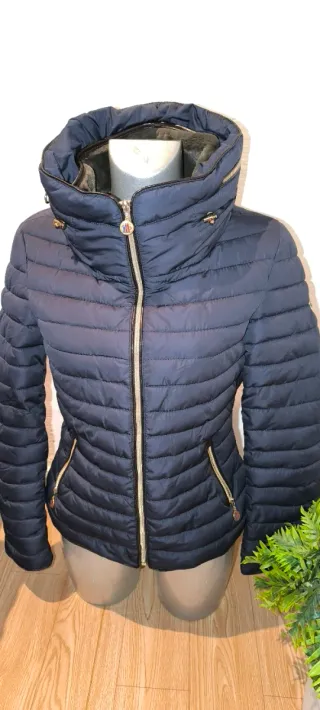 Chaqueta acolchada brillante con capucha. Vendo porque no es mi talla - Cierre de cremallera frontal. - Bolsillos con solapa en el pecho. - Puños ajustados. - Cordón de ajuste en el bajo.