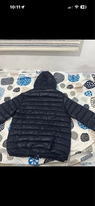 Chaqueta acolchada con capucha. - Cierre frontal con cremallera. - Bolsillos laterales con cremallera. - Detalle de bolsillo en manga con botón. - Puños elásticos.Lo usé un poco, hay manchas en la chaqueta, están en la foto ultimo